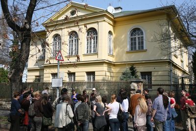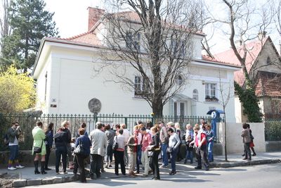 Az Ajtó című filmet Szabó Magda írónő egykori pasaréti otthona közelében forgatták. Aki kíváncsi volt az igazi ajtóra, illetve a környék helytörténeti érdekességeire, az március 24-én szombaton részt vehetett egy délelőtti sétán. ![]() A sétát a lapunkban is rendszeresen publikáló író-újságíró, Verrasztó Gábor vezette, nemcsak azért, mert jelenleg ő lakik a nevezetes ajtó mögött, abban a lakásban, ahol Szabó Magda híressé vált házvezetőnője is élt, hanem azért is, mert kiváló ismerője Pasarétnek: az ottani épületeknek és a híres lakók történeteinek. Ezeket a történeteket egyébként a Pasaréti mesék című könyvéből, illetve a Budai históriák című sorozat köteteiből ismerhetik meg az olvasók. A március végi verőfényes szombaton a Júlia utcában több mint negyven érdeklődő, fiatalok és idősebbek, budaiak és pestiek gyűltek össze. Az első állomás természetesen az ajtó volt: Szőke Júlia, azaz Szeredás Emerenc lakásának idegenek előtt soha ki nem táruló ajtaja. Verrasztó Gábortól megtudtuk, hogy még ma is él olyan lakó a házban, aki ismerte Juliska nénit, a magát valóban rendkívül keménynek és nyersnek mutató igazi jótét lelket. Az is igaz, hogy egész életében egy kriptára gyűjtött, ami – ha nem is egészen úgy, ahogyan szerette volna –, de mégis megadatott végső nyughelyéül. Amikor 1978-ban, 77 éves korában elhunyt, földi maradványait egy urnafalba helyezték el. Szabó Magda végakarata szerint az írónő halála után Juliska néni urnáját is az íróházaspár sírjába temették – igaz, védett sírról lévén szó, azóta sem engedélyezte a hatóság, hogy a sírkövön Szobotka Tibor és Szabó Magda neve mellett Szőke Júliáé is szerepeljen.