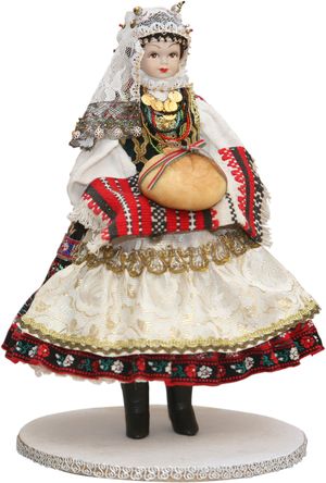 öltöztetett baba, amelyet királyi családnak ajándékoztak. Kolumbán Zsuzsának sok
