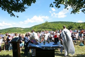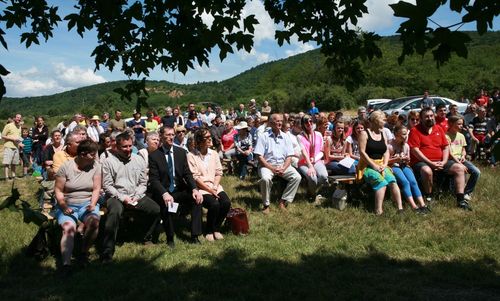 ![]() Idén 30 éves a máriaremetei Regnum Marianum közösség és 50 éves a Széphalmi Jézus Szíve Plébánia. Az ünnepség 10 órakor szabadtéri szentmisével indult Gercsén. Az eseményen részt vett többek között Varga Mihály nemzetgazdasági miniszter, a II. kerület országgyűlési képviselője, Ernyey László, az egyházi és karitatív szervezetek tanácsnoka, valamint Skublicsné Manninger Alexandra, Legény Béla és Makra Krisztina önkormányzati képviselők is. A gyönyörű napsütéses időben több százan jöttek el a szabadtéri misére, énekeltek, imádkoztak a fák és hegyek ölelésében elhelyezkedő gercsei templom előtti zöld réten. Szűcs Balázs atya beszédében arra hívta fel a figyelmet, hogy emlékezni kétféleképpen lehet: ha a múltba nézünk, és például szobrot vagy emléktáblát avatunk, vagy úgy is, ha rátekintünk az eddig megtett útra, látjuk annak nehézségeit és gyümölcseit, majd a jövőbe nézünk – ők ez utóbbit választották, amikor úgy döntöttek, fákat ültetnek, így a most felnövő gyerekek már egy gyönyörű fasort láthatnak majd. „Nézzétek az ég madarait!” – idézte a Szentírást –, majd Bognár Lajos atya áldozatos munkájára emlékeztette a híveket és a megjelenteket. Lajos atyának köszönhető, hogy romjaiból felépült az Árpád-kori kistemplom, amely ma a hidegkúti közösség egyik fontos találkozóhelye. Lajos atyát 2002-ben a szívének oly kedves Gercsén temették el.