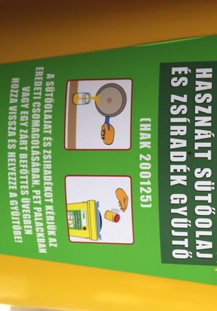 A használt sütőolajat és sütőzsiradékot nem kell beönteni a piaci gyűjtőedényekbe, hanem PET-palackban vagy befőttesüvegben kell behelyezni, így nem kell attól tartani, hogy szennyeződik a gyűjtő környezete.