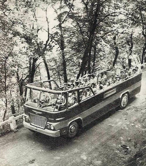 A BKV egyik jogelődje, a Fővárosi Autóbusz Üzem (FAÜ) egy különleges autóbuszjáratot is üzemeltetett, a vele való utazást „budai autóbuszkörsétaként” hirdette meg. ![]() Ezen a járaton egy Ikarus 630-as típusú kabrió autóbusz teljesített szolgálatot. Ebből a típusból összesen három darab készült, egy felújítva ma is a BKV Zrt. tulajdonában van. Az 1960-as évektől az 1970-es évek első feléig közlekedett a budai panoráma-körjárat. Útvonala a Roosevelt (ma Széchenyi) tértől a Hármashatár-hegyre vezetett, majd onnan visszatérve, a Pál-völgyi-barlang közelében, a Szépvölgyi útról a Csatárka útra fordult be; a Zöld lomb utca még nem volt kiépítve a buszközlekedéshez.