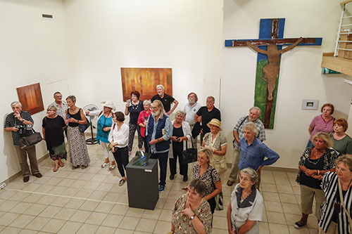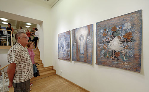A galéria koncepciójának megfelelően a mostani tárlaton összesen tíz művész többféle műfajú munkáit mutatták be. A Vízivárosi Galéria idén immár hetedik alkalommal kapcsolódott az országos Ars Sacra fesztiválhoz Fényt hozzon… című kiállítás-sorozatával, amelynek keretében minden évben kortárs alkotók szakrális témájú műveit tekintheti meg a közönség. A kiállítást Novotny Tihamér művészettörténész nyitotta meg, aki első szavaival a galériavezető Olescher Tamás munkáját dicsérte. Mint mondta, ő olyan ember, aki hitéből kifolyólag is rendkívüli módon ügyel az állandóságban a sokszínűségre. Az eddig több mint negyven alkotót mozgató kiállításokban mindig vannak évről évre visszatérő szereplők, de új nevek is felbukkannak. A művészettörténész részletes tárlatvezetésén sokszor bibliai idézetekkel fűszerezve avatta be hallgatóságát az egyes esetekben szemmel láthatóan hitéleti témájú, máshol csak elvontan, színekkel, formákkal, hangulatokkal éreztetett szakralitást hordozó alkotások mélyebb értelmezésébe. Az idei Fényt hozzon… tárlaton kiállító művészek: Aknay Tibor – fotó, Bohus Zoltán – szobor, Ganczaugh Miklós – festmény, Hager Ritta – gobelin, Koroknai Zsolt – videó, Kovács-Gombos Gábor – festmény, Luzsicza Árpád – szobor, Pataki Ferenc – festmény, Ries Zoltán – digitális print és Somogyi Győző – grafika.