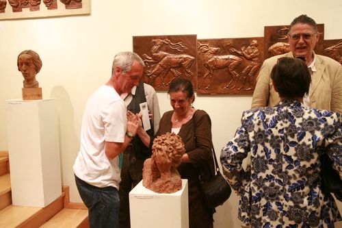 A Vízivárosi Galéria a Götz család – Götz János, Jándi Zsuzsanna és Götz Johanna – alkotásainak tárlatával csatlakozott az idei, jubileumi Kerület Napja programsorozathoz. A június 24-ig látogatható kiállítás a galéria két sorozatába is illeszkedik. ![]() A jelenlegi kiállítás a Művészcsaládok a II. kerületben, illetve az Emlékkiállítások című szériának egyaránt kiemelkedően szép gyűjteménye.Emlékkiállítás, mert az apa, Götz János szobrászművész tragikusan korán, mindössze harmincévesen elhunyt. „Természetesnek mondható egy összetartozó művészcsalád: férj-feleség-leány bemutatója, viszont a 30 éves korában, 1971-ben elveszített Götz János csak hagyatékában – szobraiban – van itt. De ránk sugárzó emberi magatartása, etikussága, szelleme immár kortalanul összekapcsolódik az alkotó hozzátartozóival, az Ő szellemi örököseivel” – mondta el Pataki Ferenc festőművész, a kiállítást megnyitó barát és pályatárs. Rendhagyónak nevezte a kiállítást, mert „töredékesség nélküli képet mutat a művészet igazi arcáról és valódi mélységeiről, azaz a művészet időn kívüliségéről. Johanna munkái és Zsuzsanna képei különös aurában élnek. Különös értelmet és ragyogást kapnak János szobrai által.”