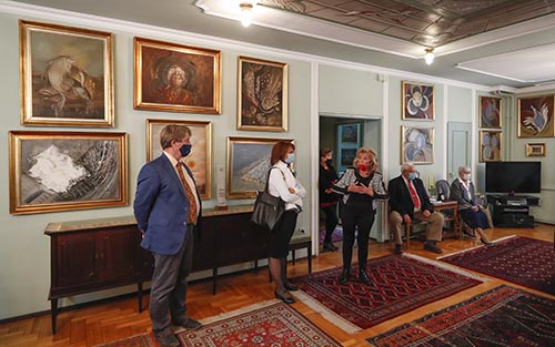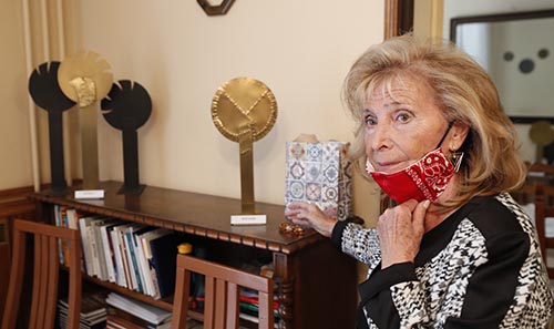 Ezt hozta az ősz. Hűs gyümölcsöket / üvegtálon. Nehéz, sötét-smaragd / szőlőt, hatalmas, jáspisfényü körtét, / megannyi dús, tündöklő ékszerét” – kezdődik Kosztolányi Dezső Őszi reggeli című verse. Az ősz a gyümölcsérés, a megérkezés ünnepe, de egyúttal a számvetés időszaka is: mit értünk el eddig? Ilyen gondolatok járhatnak a fejünkben, ha Marosi Ilona Daru utcai otthonának ajtaján belépünk. A ház műteremház, a művész pedig ebben a meghitt térben 314 műtárgyat állított ki: saját alkotásait. Változatos technikával készült képek, kisplasztikák, szobrok sorakoznak. Jellemzi őket a színek és formák játéka, a kísérletezőkedv és nagy hangsúlyt kap a bennük megélhető harmónia természet és a művészet közt. A falakon Marosi Ilona murális alkotásait is láthatjuk képeken: ezek javarészt az 1980-as években készültek az akkori modern iskolaépítési „boom” részeként: a korszakban fontos volt, hogy a gyerekek nap mint nap találkozzanak eredeti műalkotásokkal. Sőt, ahogy a művésznő által szervezett szeptember végi szakmai konferencián – az ő szavaival „derűs beszélgetésen” – megtudhattuk, néhol a pedagógusok a rajzórákon is használták őket, felnyitva a diákok szemét arra, milyen összetett alkotások ezek. A közelmúltban az 1983-ban készült III. kerületi Vizafogó úti dekoratívkerámia-kompozíciót újították fel Marosi Ilona segítségével, három éve pedig egy izgalmas új mázkísérleti munkával a Napmadár című nagyméretű sgraffitót állították helyre a Pók utcai lakótelepen.
