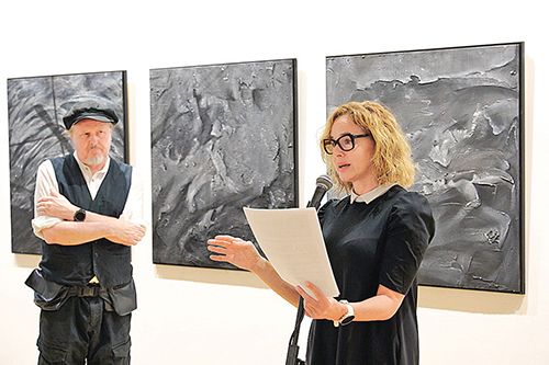 Mélyen megrendítő témájú, egyforma nagyságú, fekete-fehér festmények sorakoznak egymás mellett a Klebelsberg Kultúrkúria kiállítótermének falán. ![]() Árvai György Jászai Mari- és Lábán Rudolf-díjas látványtervező, képzőművész Árnyék világ című kiállításának képei, amelyek pusztulást és elmúlást ábrázolnak. A kiállítás gerincét azok a művek adják, amelyek a Hirosimára ledobott atombomba áldozatainak állítanak emléket. A robbanás pillanatában olyan erős fényű villanás történt, amely beleégett a tárgyakba, illetve a kitakart részek erős kontúrú árnyékokat vetettek, így a romokon az emberek teste nem, csupán kísérteties árnyaik maradtak meg. Több fénykép is készült erről, amelyek Árvai megrázó festményeinek alapját adták. A képekhez irodalmi aláfestésként Ónodi Eszter színművész a Szerelmem, Hirosima című film párbeszédeiből olvasott fel részleteket. A kiállítást Százados László művészettörténész nyitotta meg, aki beszélt Árvai György munkásságáról, valamint egységes stílusú és mondanivalójú festményeiről, amelyek egy „isten és ember nélküli világot ábrázolnak, és a traumák és veszteségek elmondhatatlanságáról és a történet elbeszélhetetlenségéről szólnak”. A kiállítást OKTÓBER 5-ig lehet megtekinteni a Klebelsberg Kultúrkúriában (1028 Templom utca 2–10.). PZS