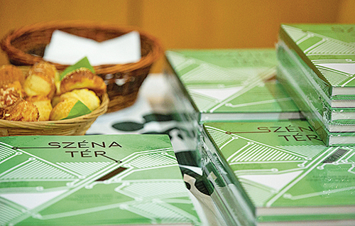 A felújított Széna tér átadását követő napon, október 23-án mutatták be a szerkesztők és a szerzők a Buda ikonikus terét középpontba állító hiánypótló tanulmánykötetet. ![]() A könyvbemutatót a Marczibányi Téri Művelődési Központban tartották számos érdeklődő előtt, akik közül többen a téren zajló 1956-os eseményeket személyesen is átélték. A megjelenteket Őrsi Gergely polgármester köszöntötte, aki elmondta, hogy a felújítás előtt sokat gondolkoztak azon, hogyan lehetne megjeleníteni a sokarcú budai tér rendkívül gazdag történetét, mindazt, amin a tér és lakói keresztülmentek. Megtervezését megelőzte történelmének aprólékos feltárása, majd segítségül hívták a történelemtudományt, a szépirodalmat és a képzőművészetet is, így a most kialakított Széna téren nemcsak egy új parkban lépdelünk, de történelmét és történeteit is megismerjük: az ott elhelyezett installációk, a feltárt romok, az új szobrok, a régi városfal, az irodalmi idézetek átélhetővé teszik a történelmet, családokat vonzanak és beszélgetéseket ösztönöznek. Különlegesség, hogy a Széna tér történetének feldolgozása párhuzamosan haladt a tér építészeti, tájépítészeti kialakításával – tette hozzá.