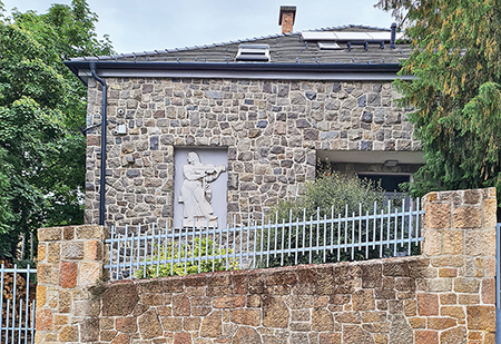 A Kútvölgyi-villa: Cinka Panna a Széher úton ![]() Van egy különleges, rusztikus kővel burkolt lakóház Kuruclesen, a Széher út 84.-ben, a homlokzatát a bejárattól balra dombormű díszíti. A fehér kőből formált, népviseletet és csizmát viselő, finom vonásokkal megrajzolt női alak a kezében hegedűt tart. Talán kevesen tudják, hogy az épület a két világháború közötti időszak leghaladóbb szellemű magyar építészének, a pécsi születésű és a weimari Bauhausban több évet töltő Molnár Farkasnak (1897–1945) az utolsó megvalósult lakóháza. A családi villa megrendelője Molnár egyik régi barátja, Kútvölgyi István volt, aki 1941 végén vásárolta az akkor még Széher út 60. alatti telket. Ő ekkor már az Idegenforgalmi, Beszerzési, Utazási és Szállítási Rt., azaz az IBUSZ hírlapbeszerzési osztályának tisztviselője volt, majd a háború után ugyanott cégvezető lett. A források szerint a ház építtetője és Molnár Farkas pécsi kapcsolataik révén ismerték egymást. Kovács Károly cigányzenész, aki jól ismerte Kútvölgyi lányát, egy interjúban úgy mesélte, hogy a megrendelő hegedűművész is volt és „annyira nagyra becsülte az első prímás asszonyt, hogy budai házuk homlokzatára egy jókora méretű Czinka Panna-reliefet készíttetett a cigányság egyik szimbólumával, a kerékkel együtt” (jozsefvarosujsag.hu, 2022. X. 20.). A dombormű Boda Gábor alkotása és maga a szobrász említette 1944-ben, hogy az előző év karácsonyára készült el a budai magánvillába szánt munkájával. Társművészként Boda kiváló építészekkel dolgozott együtt, Molnár Farkassal több ízben is, valamint ő készítette Rimanóczy Gyula Dob utcai Távbeszélő Központ és Postaigazgatóság irodaépületének szobrait. A Kútvölgyi-villa falán ma is látható Cinka Pannáról azt vallotta, hogy érzése szerint az előző munkáihoz mérve haladást jelöl, „az áttetsző márványból faragott alak majdnem ékszerként hat a sima falon” (Nemzeti Újság, 1944. VI . 4.). Az építési engedélyezési tervek első változatán két szintből álló, a domboldalba épített villa jelenik meg, a Molnár épületeire korábban jellemző lapos tetővel. Két hónappal később, 1942 májusában újabb tervek készültek, ezeken az alagsorban helyet csináltak a garázsnak és a külső is megváltozott, a lapostetős lezárásból sátortető lett, a homlokzatról eltűntek az íves vonalak. A terméskővel burkolt utcai oldalt a lépcsős bejárat és a dombormű uralja, az ablakok többnyire a hátsó, kertre néző homlokzatra kerültek a lodzsákkal együtt, illetve az oldalfalakra. Mindkét szint tervrajzán szinte szabályos négyzetbe helyezte el Molnár a helyiségeket, az alagsorba a garázs, a mosókonyha és a tároló mellé a házmester lakását, a család részére pedig a földszinten alakított ki lakást két lodzsával. Az előtérből a lakás közepén elhelyezkedő, tágas hallba lépünk, ami ebben az esetben a kertre néző lodzsa felől kap természetes fényt, ebből nyílt a szülők hálója és az „úri szoba”. A gyermekek és a cseléd az utcai oldalra néző szobákat vehették birtokba. A háború után, már a nyolcvanas években a felső lakás tetőtér felőli bővítésére kértek engedélyt, ezáltal jelentősen megváltozott a hátsó homlokzat, de az utcai oldalon ennek lényegében nincs nyoma. Az épület tulajdonosai még akkor is az építtetők voltak. A homlokzat szépen őrzi eredeti képét és a romantikus részletekkel megrajzolt épület jól mutatja, hogy az építész rövid élete alatt villáinak alapmotívumától, a radikálisan modern és minimalista vörös kockaháztól indulva mekkora utat járt be. A festőként és tervezőgrafikusként is tevékenykedő, rendkívül sokoldalú Molnár a szintén általa tervezett, pasaréti Lotz Károly utca 4/b alatti társasházában lakott családjával, amikor a főváros ostromakor az óvóhelyet elhagyva elindult a felső szinten lévő lakásukba és egy becsapódó lövedék miatt megsérült. A villától nem messze lévő Széher úti kórházban látták el, de nem tudták megmenteni az életét. Halála után családja a pasaréti lakás háborús sérülései miatt egy időre a Kútvölgyi-villába költözött, Molnár Farkast ideiglenesen itt a szomszédban, a szemben lévő telken temették el, sírja ma a Farkasréti temetőben áll. |