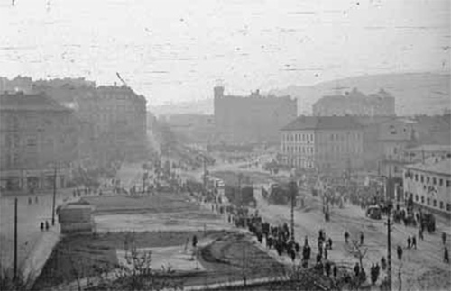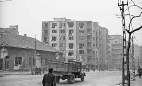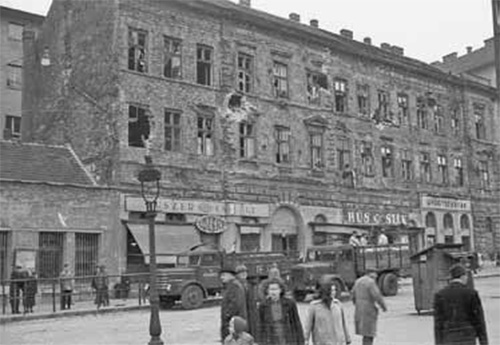 Az októberi fegyveres ellenállás. ![]() A budai oldalon a három kerület találkozásánál, a Széna téren és közvetlen környékén bontakozott ki a legnagyobb ellenállás, miután a szovjet csapatok november 24. hajnalán bevonultak a fővárosba. A Széna tér a budai oldal talán legfontosabb közlekedési csomópontja: ide torkollik a pesti Nagykörút folytatása, a Mártírok útja (Margit körút), s innen indul nyugat felé a Malinovszkij (Szilágyi Erzsébet) fasor, illetve dél és délkelet felé az Alkotás utca, a Krisztina körút és az Attila út. A Széna tér birtokában Budapest átmenő forgalmának jelentős része ellenőrizhető volt. Ezt a felkelők gyorsan felismerték. Egyelőre azonosítatlan 24 éves egyetemista parancsnokuk irányításával mindinkább ellenőrzésük alá vonták a környéket, igazoltatták az autókat, a Széna téren pedig barikádot, védősáncokat építettek, amelyeket később a Déli pályaudvarról kitolt vagonokkal erősítettek meg. Ám míg Pesten, főleg a VIII.–IX. kerületben igen súlyos harcok dúltak, itt komolyabb összecsapásokról nincsenek információink. Október 26-án csatlakozott a Fiatalokhoz a később legendássá vált Szabó János (Szabó „bácsi”) 59 éves gépkocsivezető és későbbi alparancsnokai, a jugoszláv állampolgárságú Ekrem Kemál villanyszerelő és a zsidó származású Bán Róbert műszerész. E nap folyamán különböző civil egységekkel erősödött, így a Margit híd védőivel is. Rusznyák László vezetésével nagy létszámban érkeztek pilisszentiváni bányászok, továbbá ipari tanulók is csatlakoztak. Az egyik forrás szerint 27-én 11–12 óra között a Széna tériek harcba szálltak egy nagyobb ÁVH-s osztaggal. A felkelők – akiknek sorait három Bem laktanyabeli katona is erősítette – visszaverték az ÁVH-sok támadását. Egy államvédelmista meghalt, a Széna térieknek ekkor nem voltak veszteségeik. Ugyanekkor a szovjet parancsnokság Gorbunov ezredes vezetésével a 128. lövész gárdahadosztályt küldte a térségbe azzal a feladattal, hogy semmisítse meg a felkelőket Buda körzetében. Ha szovjet harckocsik tűntek fel, a felkelők átmenetileg szétszóródtak. Október 27-től a Széna téri felkelők már szembe mertek szállni a megszállók páncélosaival is. Ennek magyarázata abban keresendő, hogy a csoport felduzzadása megnövelhette a felkelők önbizalmát, továbbá a parancsnoklást átvevő Szabó János a radikálisabb ellenállás híve volt. Buzdítólag hatott, hogy a lakosok közül sokan élelemmel és forró teával látták el őket, valamint az is, hogy Pestről jövők beszámoltak a Corvin köz, Kilián laktanya körüli harcokról. A felkelők most már azt hangoztatták, hogy a fegyvert semmiképp sem adják ki a kezükből. A felkelők a Széna tér házaiban, legnagyobb erőkkel a bázishelyükön, a földalatti-építkezés épületében és a Budavár vendéglő tetején foglaltak állást. Egyikük úgy idézte fel a felkelők általános taktikáját: „Minden esetben megvártuk, míg az elhaladó járművek olyan helyzetbe kerülnek, hogy eredményesen ellenünk a harcot felvenni ne tudják, akkor nyitottunk rájuk tüzet. Ez a gyakorlatban azt jelentette, hogy hátulról lőttük le őket, amikor már majdnem biztosak voltak abban, hogy nem tüzel rájuk senki. A tüzelésre mindenkor az ottani parancsnok adott utasítást, aki az erre legalkalmasabb időpontot és helyzetet várta ki.”