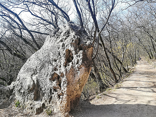 Hűvösvölgy erdei kerékpár- és gyalogút–Pasarét. Nagyon kényelmes erdei séta. Ismét az Ördög-árok hídján, a kék és a sárga sáv jelzések kíséretében kelünk át, de a támfalnál rögtön jobbra térünk. Turistajelzés ugyan nincs, de az utat könnyű követni (térképvázlatunkon zöld pontsorral tüntetjük fel a követendő irányt). Csakhamar csatlakozik hozzánk a kerékpárút is, és a két szerepet betöltő erdei út nagyjából az Ördög-árokkal párhuzamosan vezet minket a beépített területig, a Páfrány út végéig. Azonban szép befejezése a sétának, ha az Apáthy-szikla alatt álló épületek és villák szegélyezte Páfrány úton elmegyünk a hűvösvölgyi villamos Nagyhíd nevű megállójáig. Összesen 2,45 kilométer, szintkülönbség lényegében csak a villamoshoz vezető lépcsősor. |