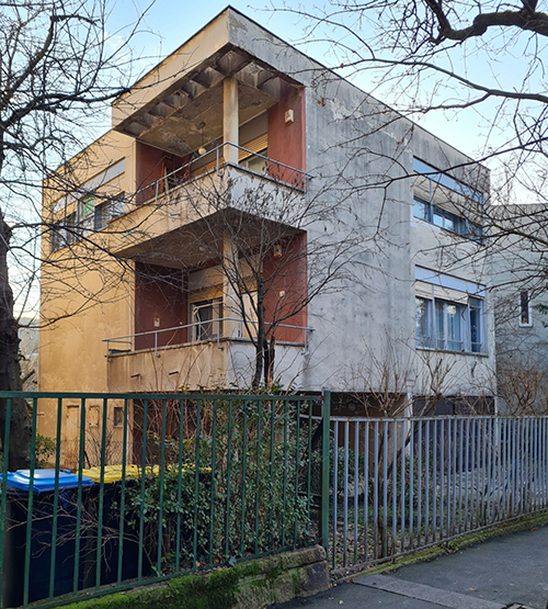 Kettő az egyben. A Pasaréti út 7. szám alatt nyíló, modern stílusú, háromszintes társasházat Molnár Farkas életművének csúcspontjaként emlegetik. ![]() A Pasaréti út 7. bejárati ajtaja az 1930-as években Ha gyalog járunk arra, és befordulunk a Trombitás út sarkán, azt is látjuk, hogy a ház sarkához építve egy különálló, alacsonyabb, hasonló stílusú épület csatlakozik. A saroktelekre, a dr. Pekanovich István számára készült társasház mellé ugyanis még egy kétszintes villa tervét készítette el a tervező dr. Bajai Ernő részére. A korabeli leírásokból az is kiderül, hogy a villa az eredeti terveken alig érintkezett a másik épülettel, az íves összekötést a hatóság írta elő.