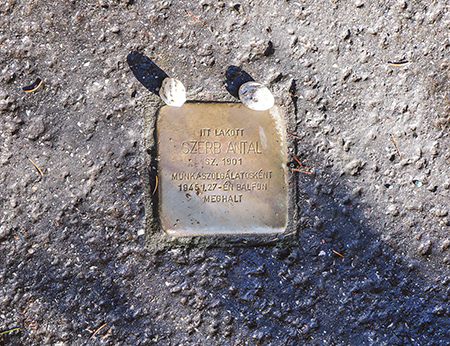 A holokauszt nemzetközi emléknapján, január 27-én Őrsi Gergely polgármester csendes főhajtással emlékezett meg az áldozatokról Szerb Antal botlatókövénél. ![]() Az író felnőtt életének legtermékenyebb részét Budán töltötte: a Torockó utcában 1933-tól 1938-ig, a Hűvösvölgyi úton pedig 1938-tól 1944-es elhurcolásáig lakott. Buda az ő számára az alkotást és az ahhoz szükséges nyugalmat jelentette, majd pedig a valódi otthonra, családi harmóniára találást. Valószínűleg a munkaszolgálatban, 1944–45 telén a fagyos országúton az erőltetett menetben vánszorogva is ide vágyott vissza. 81 éve ezen a napon verték agyon Szerb Antalt Balfon, és ugyanekkor szabadult fel az auschwitzi haláltábor is. „Auschwitz szavakkal kezdődött, amikor egymásban elkezdtük az ellenséget keresni. Az iszonyat fényes nappal bámult ránk, és a gyűlölet a mindennapok része lett. Ahhoz, hogy ne jöhessen el újra olyan idő, amikor egymásban ellenséget látunk, emlékeznünk kell, mert csak az emlékezés segíthet, hogy mindig felismerjük a gyűlölet elvetett magvait” – emlékeztetett a polgármester, és idézte Szerb Antal Utas és holdvilág című regényének részletét: „…az iszonyat nem az éjszaka és a félelem dolgaiban a legerősebb, hanem akkor, mikor fényes nappal bámul ránk valami mindennapi dologból, egy kirakatból, egy ismeretlen arcból, egy fa ágai közül...”