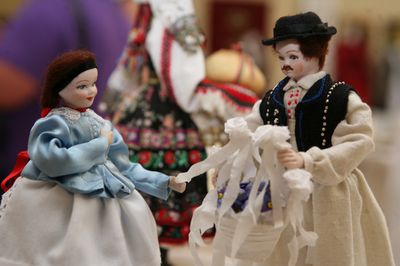 A kiállított babák és az általuk megformált népszokások