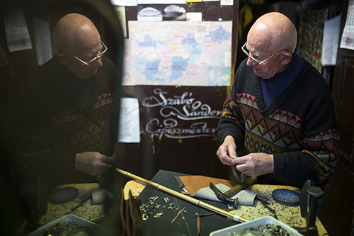 – Nagyon jó érzés, hogy sokan jönnek az utolsó munkanapomon, persze, aki ismer minket, az tudja, hogy nálunk mindig családias légkör fogadta a betérőket – mondta el ottjártunkkor Sándor bácsi. – Sokáig laktam itt, és közel ötven éve dolgozom az üzletben, több generáció nőtt fel a környéken azóta. Feleségemmel, Marikával – aki kitanulta mellettem a szakmát – mindig szerettük a kuncsaftokat, barátsággal, szeretettel fogadtunk mindenkit és velünk is nyitottak voltak a vendégek, itt még a randevújukat is elmesélték az emberek. Egyszer jót beszélgettünk két fiatalemberrel, akik végül elővették a NAV-igazolványt. Persze mindent rendben találtak, mint mindig. A zárás előtti napokban is sokan néztek be a Varsányi Irén utcai műhelybe. Egy utolsó kézszorítás a mesterrel és feleségével, néhány szép szó, könnyes búcsú, de akadt olyan is, aki nem értette, miért hagy fel a mester a szakmával. – Ne feledjük, hogy 88 éves vagyok, és nagyon valószínű, hogy egyben a II. kerület legöregebb iparosa, aki még dolgozik. Élek-halok a szakmámért, az tartja bennem a lelkesedést, de az orvosom szerint már többet kell pihennem. Jászfelsőszentgyörgyön születtem, és 1945-ben, nehéz, ínséges időkben lettem ipari tanuló Budapesten. 1969-ig dolgoztam a mértékcipő-készítő vállalatnál, utána nyitottam saját műhelyt a Vízivárosban, ahonnan lassan kikopnak a régi mesterek. Sándor bácsi nem titkolja, hogy nehéz szívvel vonul vissza, de megnyugtatja, hogy nem szűnik meg az üzlet, sőt, végre talált olyan fiatal mestert, akinek a munkájával elégedett, ezáltal a régi kuncsaftok is azok lehetnek. – Nem vicc, de öt évig kerestem valakit, aki tud rendesen cipőt javítani, sőt készíteni is. A cipészdinasztiából származó Bernáth Gábor veszi át az üzletet. Sokan jöttek, hogy továbbvigyék a boltot, de főként olyanok, akik gyorsjavítóknál voltak. Sajnos, nem tudtak az elvárásoknak megfelelően dolgozni, ami nem az ő hibájuk, hanem a nem megfelelő idejű képzésé. Persze, a mai cipők sem olyanok, mint a régiek, az anyagban nagy a különbség. Régen a bőrtalp is bírta az esőt, szögelve volt, ma pedig az 50 ezer forintos cipőt is gyakran építik papírvázra, sokszor még a varrás is csak dísz, leválik a talp. A susztert ugyanakkor sok egyéb faladattal is megkeresik: javítottam óraszíjat, táskát, és bőrdíszműves munkákat is vállaltam. A legkedvesebbek számomra a kézzel készített cipőim.