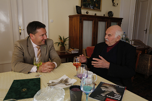 November 7-én ünnepelte 95. születésnapját Horváth János közgazdász, politikus, aki 2003 és 2014 között az Országgyűlés legidősebb képviselője, korelnöke volt. ![]() A jeles alkalomból Láng Zsolt polgármester II. kerületi otthonában kereste fel, és köszöntötte idős pályatársát. Az előző parlamenti ciklusban mindkét fideszes politikus országgyűlési képviselőként is tevékenykedett, így beszélgetésükben elsősorban azokat az időket idézték fel. Mivel Horváth János több mint négy évtizedet töltött az Egyesült Államokban, szó esett az amerikai elnökválasztásról is, de a mindkettőjük szívéhez közel álló II. kerületi téma is akadt.