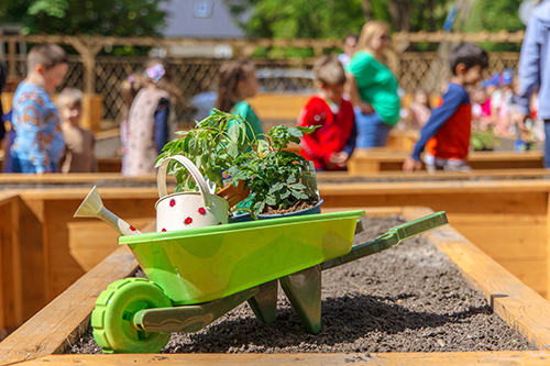 A Szabadság utcai játszótér mögött található zárt ligetben a magaságyások mellett kerti csapot létesítettek, és két házikót is építettek: az egyikben a gyerekek számára biztosított közös locsolókannákat, ásókat, gereblyéket, egyéb kerti szerszámokat lehet tárolni, a másik pedig kis elárusítóhelyként üzemelhet majd.